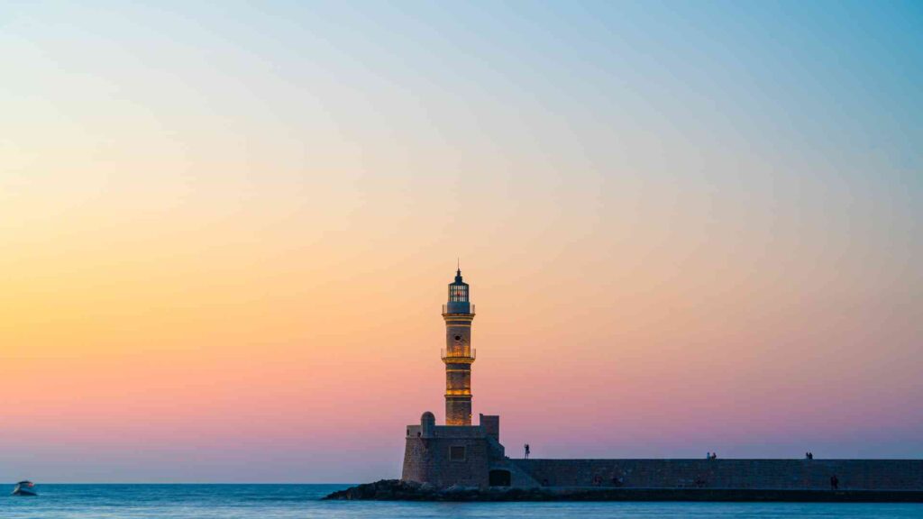 Den ikoniska fyren vid hamnens inlopp är ett av Chanias starkaste landmärken. Ursprungligen byggd av venetianarna och senare omformad under osmansk tid, står den som en symbol för stadens långa relation till havet. Promenaden dit, särskilt i kvällsljus, är en stillsam ritual där stad och hav möts i tyst samförstånd.