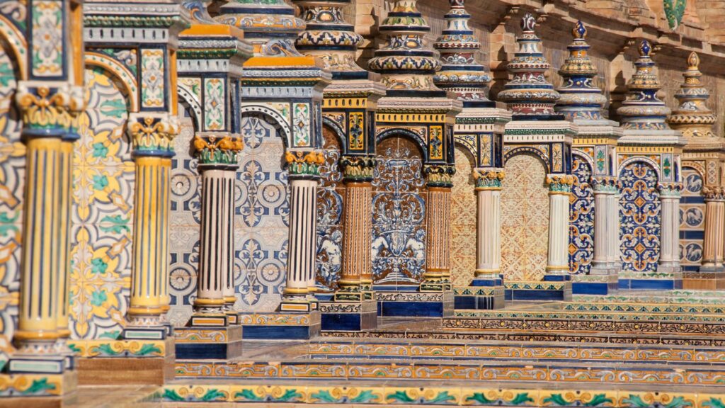 Byggd till Iberoamerikanska utställningen 1929 är Plaza de España en av Sevillas mest ikoniska platser. Den halvcirkelformade byggnaden i tegel och kakel symboliserar Spaniens regioner, med färgstarka keramikbänkar som representerar var och en. Fontäner, broar och kanaler skapar en nästan sagolik atmosfär, medan hästkärror och musiker förhöjer upplevelsen av denna majestätiska plats i Parque de María Luisa.
