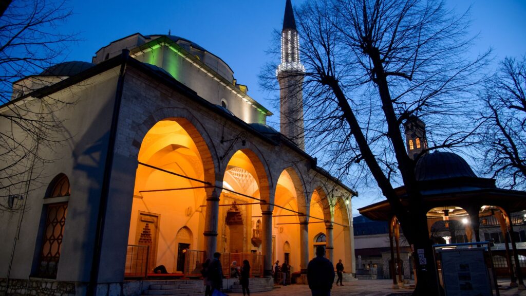 Ett annat viktigt landmärke är Gazi Husrev-begs moské, en av de mest betydelsefulla islamiska byggnaderna på Balkan. I dess närhet ligger Katedralen för Jesu heliga hjärta och Den gamla ortodoxa kyrkan, vilket tydligt visar Sarajevos unika samlevnad mellan olika religioner och traditioner.