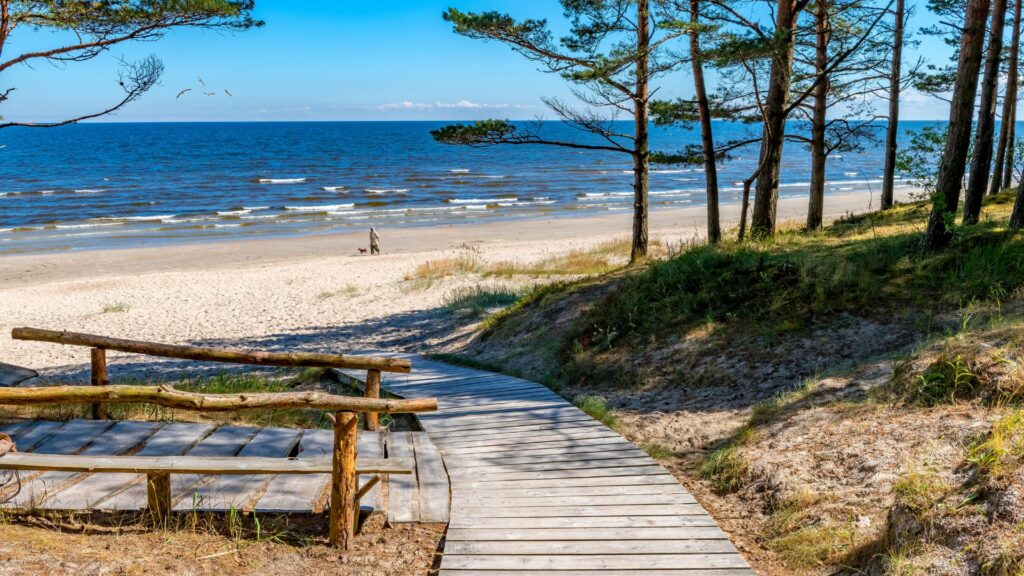En kort tågresa från Riga ligger denna eleganta badort med vita sandstränder, tallskogar och charmiga trähus, perfekt för en dagsutflykt.