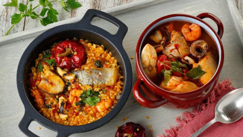 Caldero är en traditionell fisk- och risrätt från Tabarca-ön, en kort båtfärd från Alicante. Rätten tillagas i en stor gryta, eller “caldero”, och innehåller färsk fisk från Medelhavet, såsom bläckfisk eller små fiskar, tillsammans med tomat, paprika och saffran. Risets smak får sin intensitet från den fiskbuljong som långsamt kokats under tillagningen, vilket ger en mustig och aromatisk rätt som hyllar havets smaker.